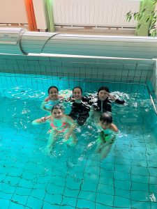 36 Kinder hatten sich angemeldet und wurden in fünf Gruppen eingeteilt. Bis auf eine Freitagsgruppe haben alle Kinder zweimal die Woche Schwimmunterricht, und so hoffen wir, dass möglichst viele Kinder sich bis zum 30.9.21 „über Wasser halten können“.